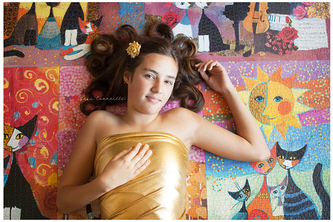 Once in a while I welcome a wonderful teen into my Stellenbosch Photography Studio. This gorgeous teen needed a shoot to capture who she was at this point in her childhood. And she is a puzzle-building aficionado. No puzzle is too big or too complicated for her! She just patiently builds them, piece by piece, colour block by colour block, similar shape by eye wateringly similar shape - I should know, because for 2 weeks before this shoot we built puzzle after puzzle to create our own backdrop. In the end, 10000 pieces of Rosina Wachtmeister puzzles lined up across my studio floor. This was a super fun memory to capture, and I really enjoyed the process leading up to our shoot.